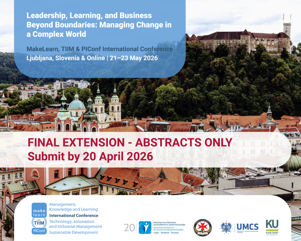 The deadline for full paper submission to the MakeLearn, TIIM & PiConf 2026 International Conference has now passed. We sincerely thank all authors who have submitted their full papers.
